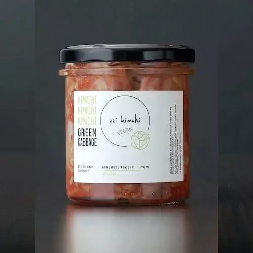 Kimchi wegańskie z kapusty głowiastej, czyli jangkimchi kimchi wyprodukowane ręcznie w małej rodzinnej manufakturze przez twórczynie Ozi.kimchi. Najlepsze kimchi w Polsce tworzone według tradycyjnej koreańskiej receptury. Najważniejszymi składnikami tego kimchi są: kapusta głowiasta biała, marchew, biała rzodkiew, czosnek, imbir i płatki chilli.